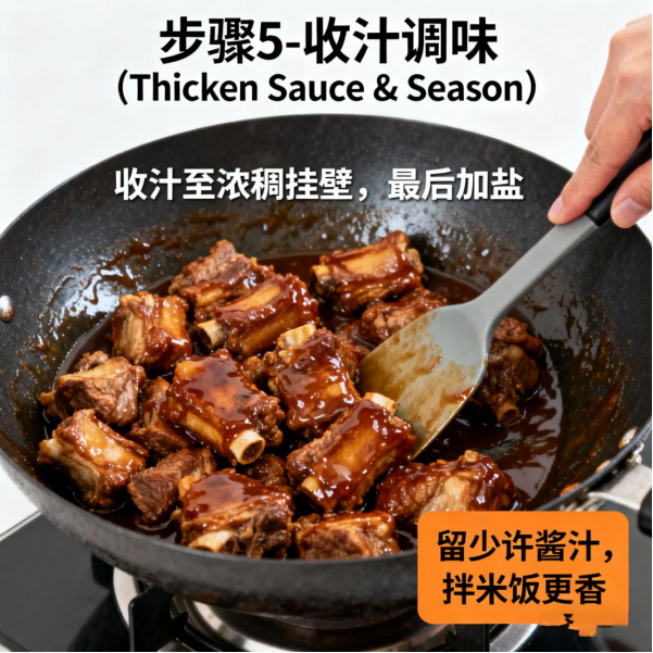 Step 5: Thickening the Sauce + Seasoning (The Sauce Tastes Best When It Clings to the Ribs)