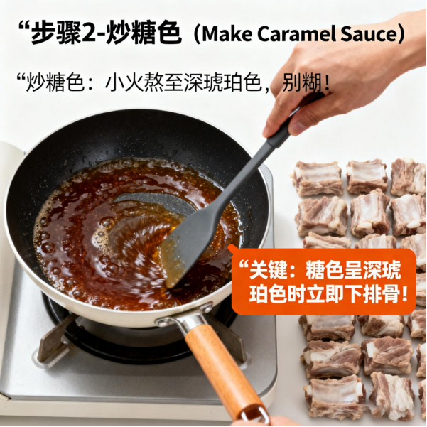 “Key point: Add the ribs immediately when the caramel turns dark amber!