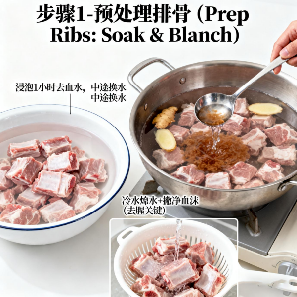 Step 1: Preprocess the Ribs (Remove Blood and Fishy Odor, Make the Meat Tender)