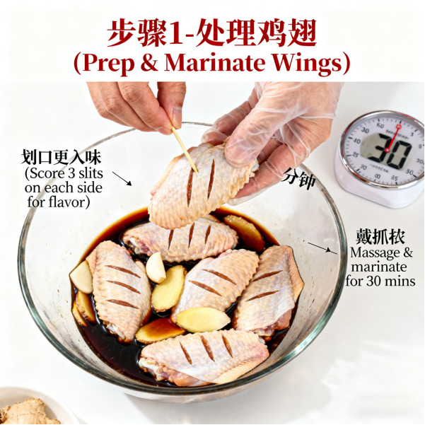 Step 2: Marinate the Chicken Wings (At Least 30 Minutes—The Longer, the More Fragrant)