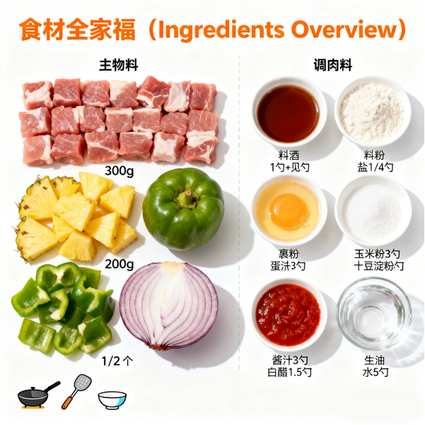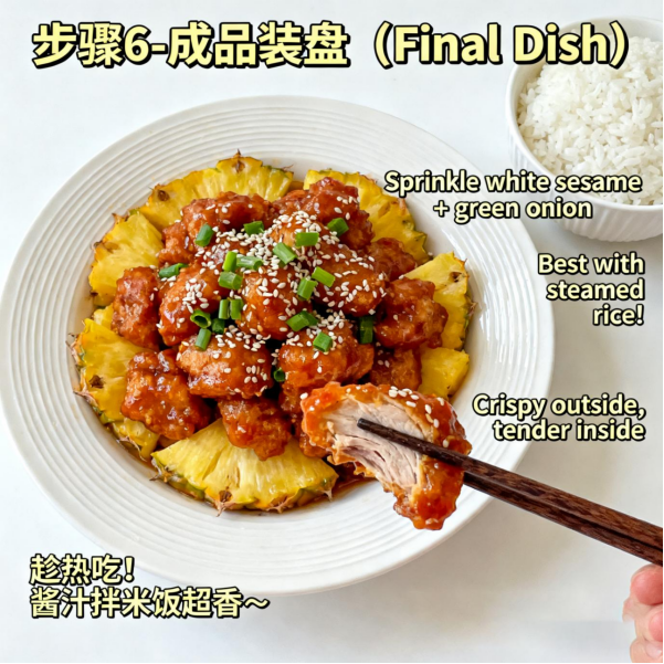 - Substitution options: Replace pork with chicken breast (for a lower – fat option), replace pineapple with apple chunks/pear chunks (which also provide a sweet – and – sour taste), and use corn starch alone if there is no potato starch (The crispiness will be slightly reduced, but the flavor will not be affected).