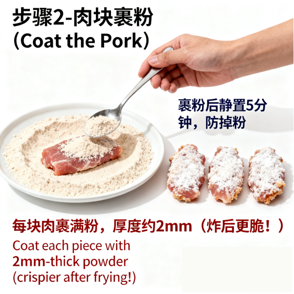 Step 2: Coat the Meat with the Coating (Key to Crispy Frying!)